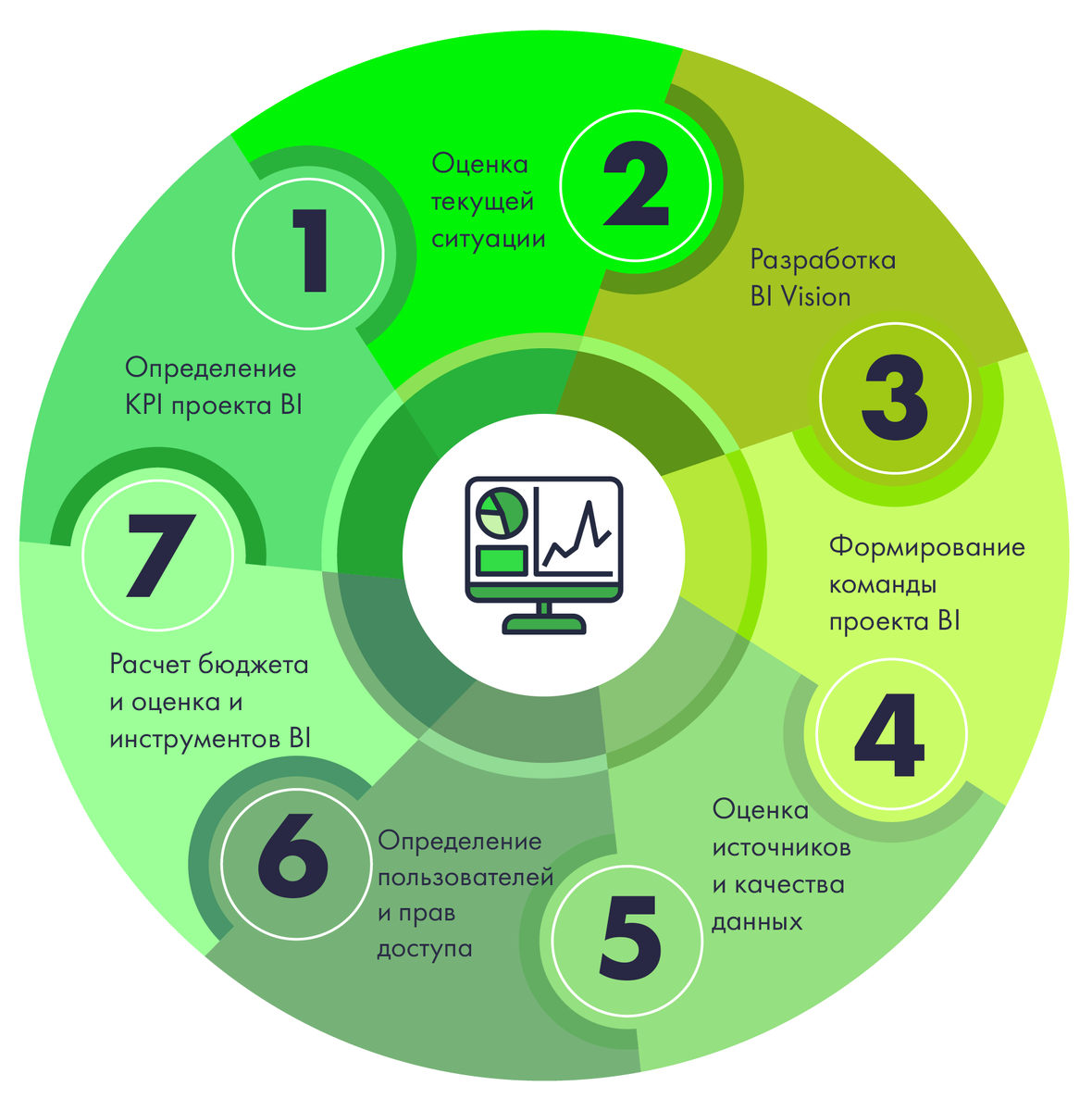 Если вы не использовали BI-системы ранее, необходимо провести анализ готовности инфраструктуры, бизнес-процессов и источников данных. Это поможет вам выбрать оптимальный вариант архитектуры BI-решения и инструментов визуализации.