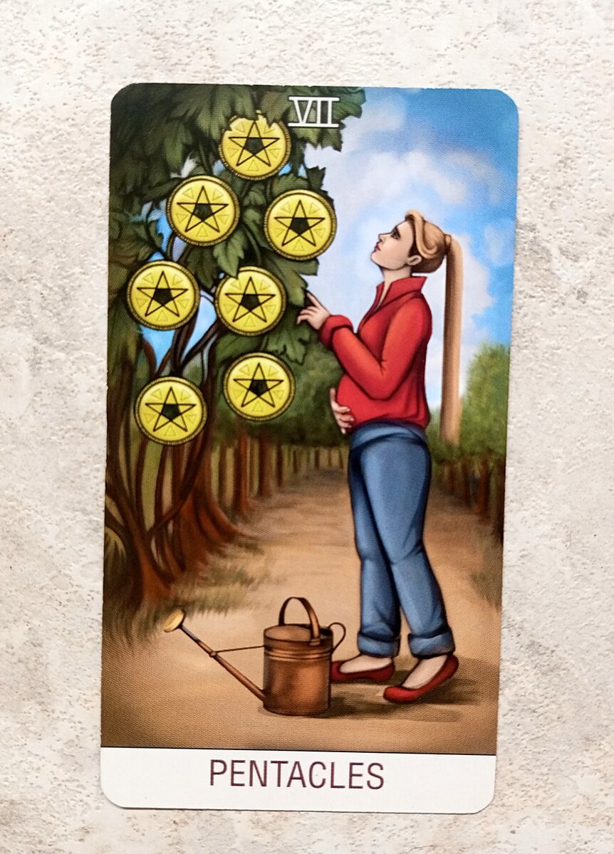 7 пентаклей. Наберитесь терпения, награда вас найдет. Вы упорно идете к цели, и в конце вас ждет вознаграждение. Не суетитесь, иначе потеряете силы. В отношениях все ровно без изменений, нужно добавить романтики и чувств.