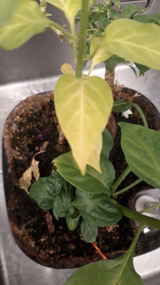 Пока я был сфокусирован на гидропонике, чуть не упустил перцы в торфогрунте. Есть у меня кашпо, где в 4,5 литрах торфогрунта растёт аж 3 перца: двухлетний Хабанеро оранж, однолетний Nu Mex Suave, и молоденький Тринидвд Перфюм. На деле есть огромные сомнения, что это Перфюм, посажен для проверки. Двадцать дней назад я пролил горшок стандартным рассолом для перцев, до 1440 ppm дренажа Поскольку это грунт, особо не заморачивался над регулярной подкормкой. Но грунту более двух лет. Растения что могли, из него выели. Сегодея утром глянул, а у Тринидада все нижние листья желтые. Потрогал, отвалились. Поскольку неизвестно, что за причина, начал проливать водой. Перввй дренаж показал всего 400 ppm! То есть за 3 недели растения съели всё, и голодали. Я предполагал, что ppm будет низкий, но не настолько. 400 ppm в дренаже вижу в перввй раз. Пролил литром питательного раствора, теперь так: