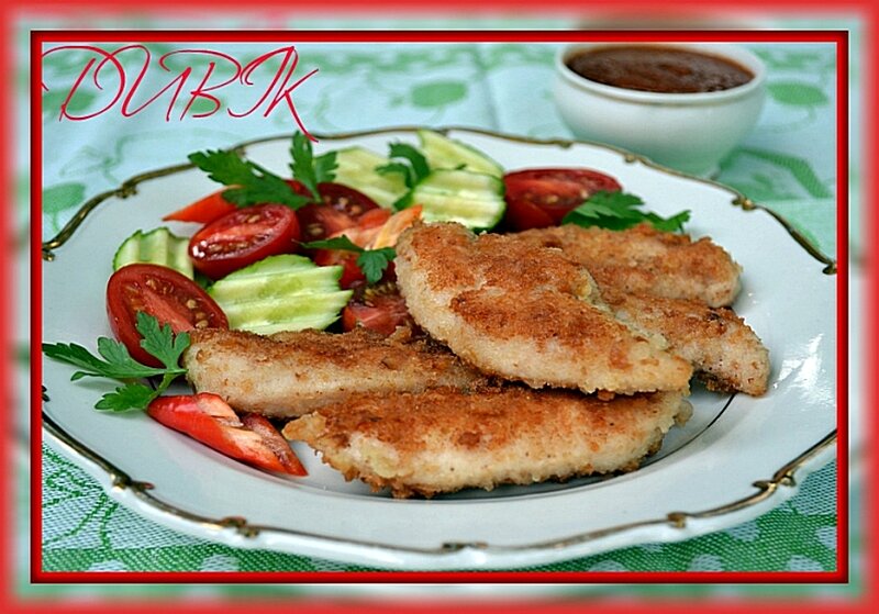 Обвалять кусочки в панировочных сухарях и обжарить на растительном масле .