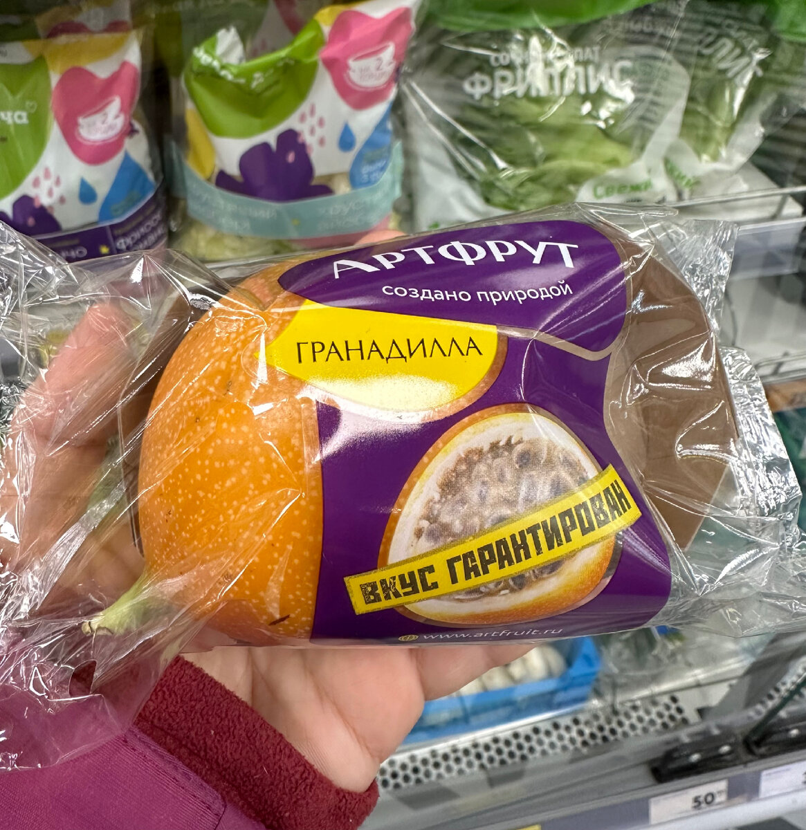 Гранадилла :) Пробовали такое? Я тоже нет :))) Ее тоже можно разрезать на 2 части и есть ложечкой. Не понравится тем, кто не любит косточки (например в винограде), но мне очень понравилась - по вкусу как крыжовник :) (а я очень люблю крыжовник). Люблю пробовать все новое и люблю немного разнообразить рацион при похудении.