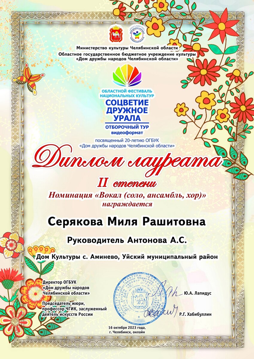 На этой неделе, 16 октября, в Доме дружбы народов Челябинской области в видеоформате прошел 5-ый заключительный отборочный тур Областного фестиваля национальных культур «Соцветие дружного Урала».