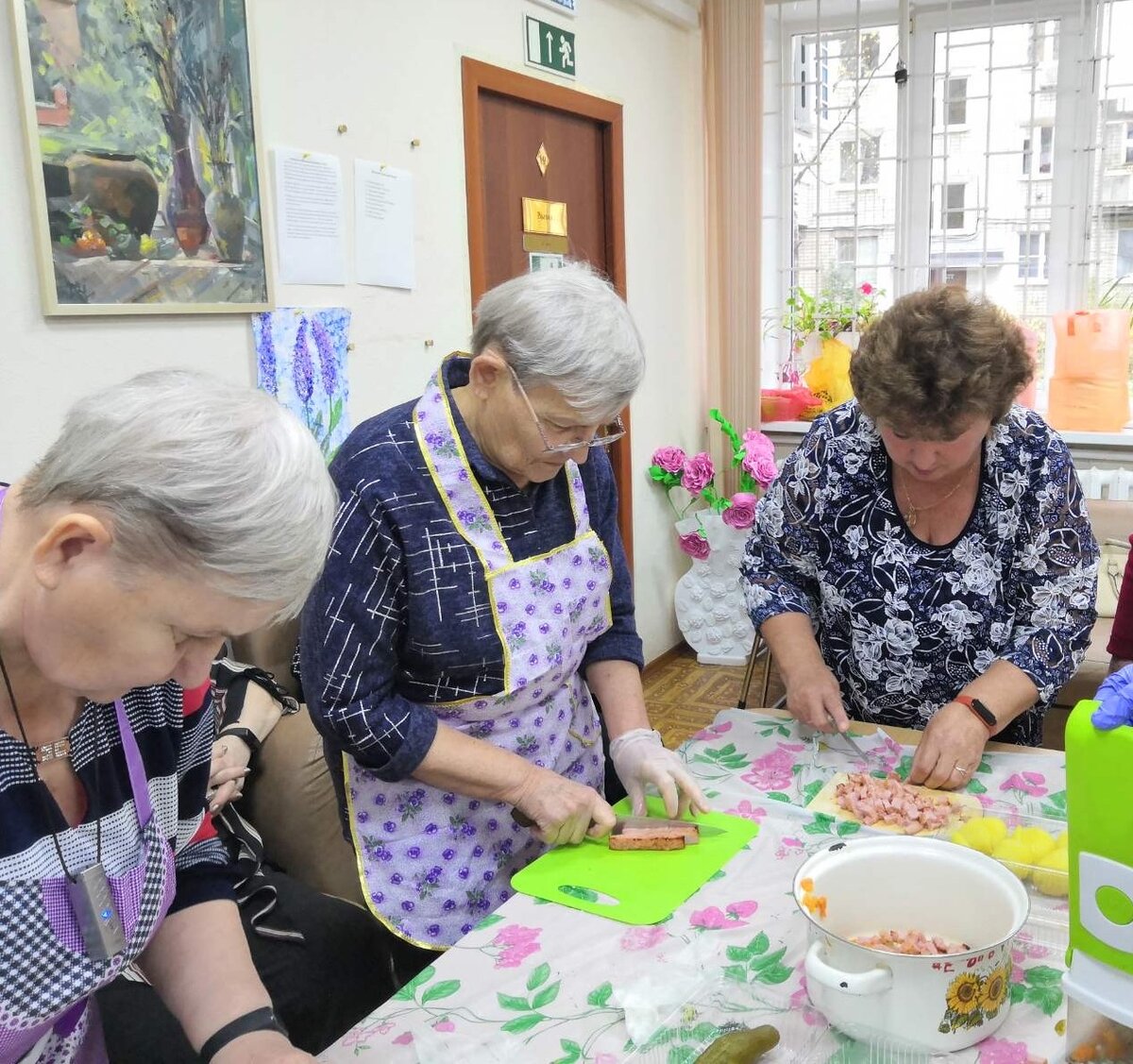 После интерактивной встречи состоялся «#кулинарный_баттл», приуроченный к #Международному_дню_повара. За звание «Кто вкуснее и быстрее?» боролись две команды: команда получателей социальных услуг отделения дневного пребывания и команда студентов ГПОУ Яо Яр КИП с педагогом Войцеховской Е.А. В первой части «кулинарного баттла» команды должны был