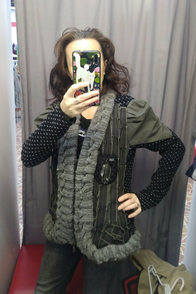 Здравствуйте, одно дело агитировать, а другое участвовать самому, одно дело с удовольствием примерить и другое дело носить это каждый день. Охотно примерила этот предмет одежды, но купить себе, такое мне и в голову не приходит. Хотя кто знает, раньше не любила спортивную обувь, а с возрастом я её оценила. Может со временем я стану оригиналкой и буду поражать соседей своей эксцентричностью)). Цены пишу полные. Не знаю это кардиган или жакет, оно с широкой трикотажной полоской по краям и вставками цвета хаки по рукавам. Tricot Chic – итальянская компания по производству женского трикотажа. Она была создана в 1972 году супружеской парой Карлом Нава и Розой Грэнэта. Бренд стал неотъемлемой частью гардероба европейских женщин благодаря своему неповторимому стилю. Цена впечатляет не менее чем модель. Эти полосы-рюшки нашиты по полочкам. Карман плетёный как корзинка и кокетливый бантик. А это рукава и спинка, тончайший трикотаж. Недешевый бренд, конечно. И данная, модель просто фонтан)) А