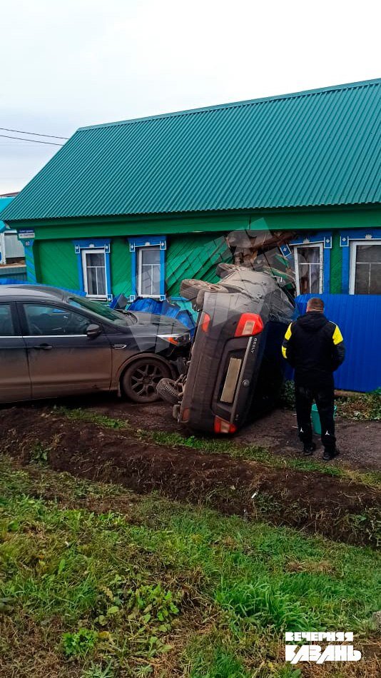 Авария произошла в селе Абдрахманово в Альметьевском районе. По словам очевидцев, один водитель подрезал другого, в результате обе машины вылетели с дороги и врезались в дом.