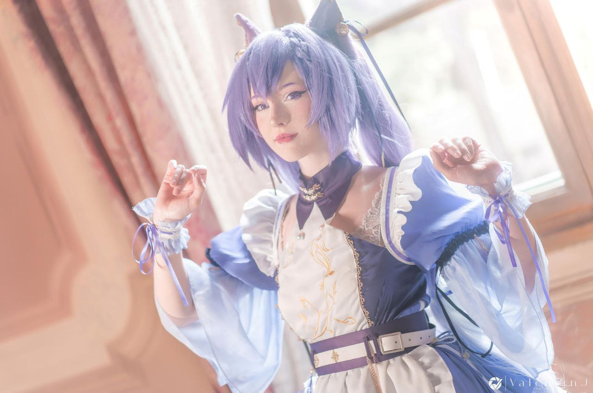 Громовой косплей на Нефритовое Равновесие Кэ Цин в образе горничной из Genshin Impact