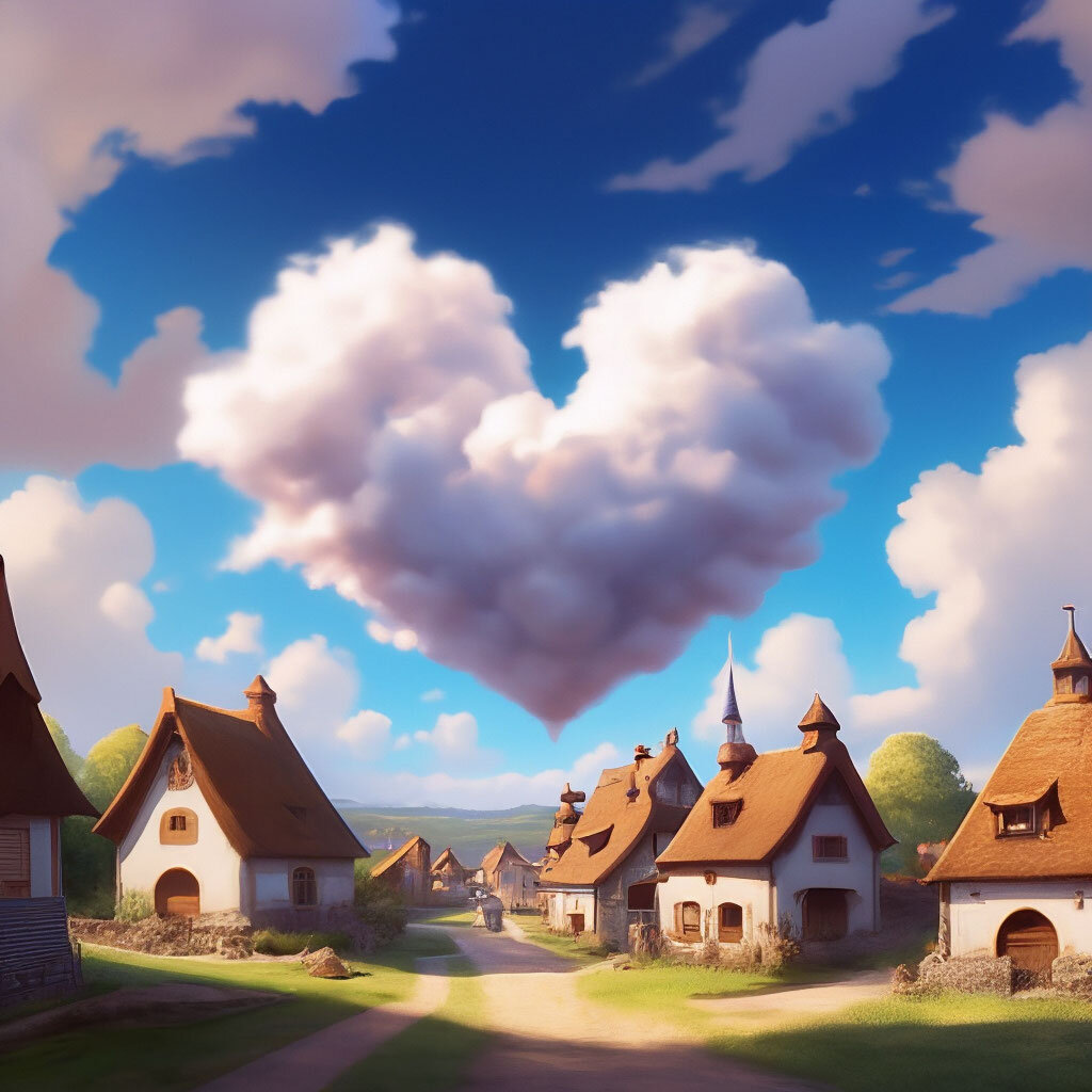 Над одной деревней, жило маленькое облако. И это облако было особенным - оно было художником. Облако верило, что небо — это самый большой холст, и каждый день оно создавало на нём новую картину из фигур и форм. Каждое утро, когда солнце только начинало подниматься, облако начинало своё творчество. Оно принимало различные формы используя свое мастерство и невероятное воображение. Картины в форме сердец и звёзд, цветов и птиц, а иногда даже фантастических сказочных существ проплывали над деревней. А на рассвете и закате ещё и окрашивало своё творчество разными оттенками розового и оранжевого. Его творчество вызывало радость, и восторг у всех, кто смотрел на небо. Дети радовались, когда облако создавало белоснежных котиков, зайчиков и радужные мосты через всё небо. Влюбленные пары на закате любовались сердечками, которые проплывали над ними и чувствовали, как их сердца наполняются романтикой. Но в один день что-то стало не так. Облако почувствовало, что его искусство становится однообразн