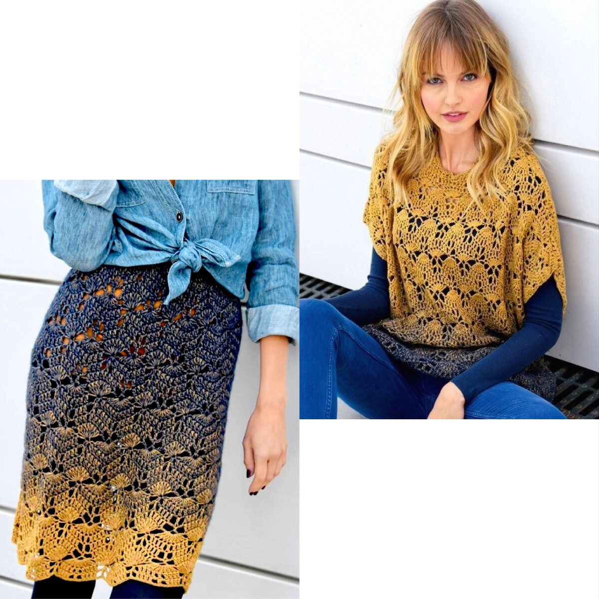 Эффектно и стильно! Безрукавка и юбка связанные крючком с описанием работы и схемами.