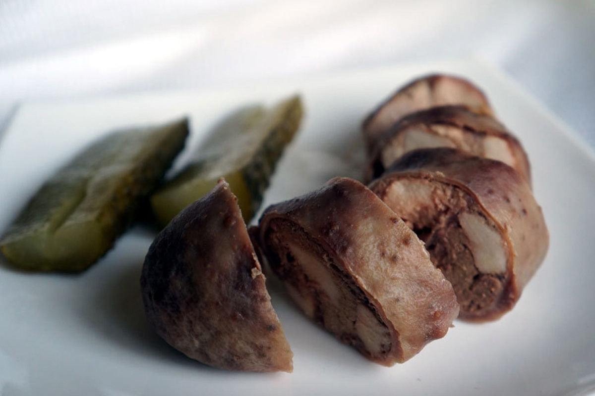 «В основе кухни коренных малочисленных народов севера, населяющих Ямальский полуостров, лежит рыбный промысел, издревле стоящий наравне с касланием оленей на тундровых пастбищах. Это хантейское блюдо готовится из желудка и печени налима, обитающего в многочисленных северных реках. Сам процесс готовки ювелирный. Паннэ тырам на русский язык переводится как «налимья колбаса»: она готовится бережно, аккуратно, кропотливо. Придётся потрудиться, а после - непременно поделиться со всеми домочадцами, особенно с детьми. Но самый первый и лакомый кусочек непременно преподносят самому старшему в семье», - рассказал военнослужащий.