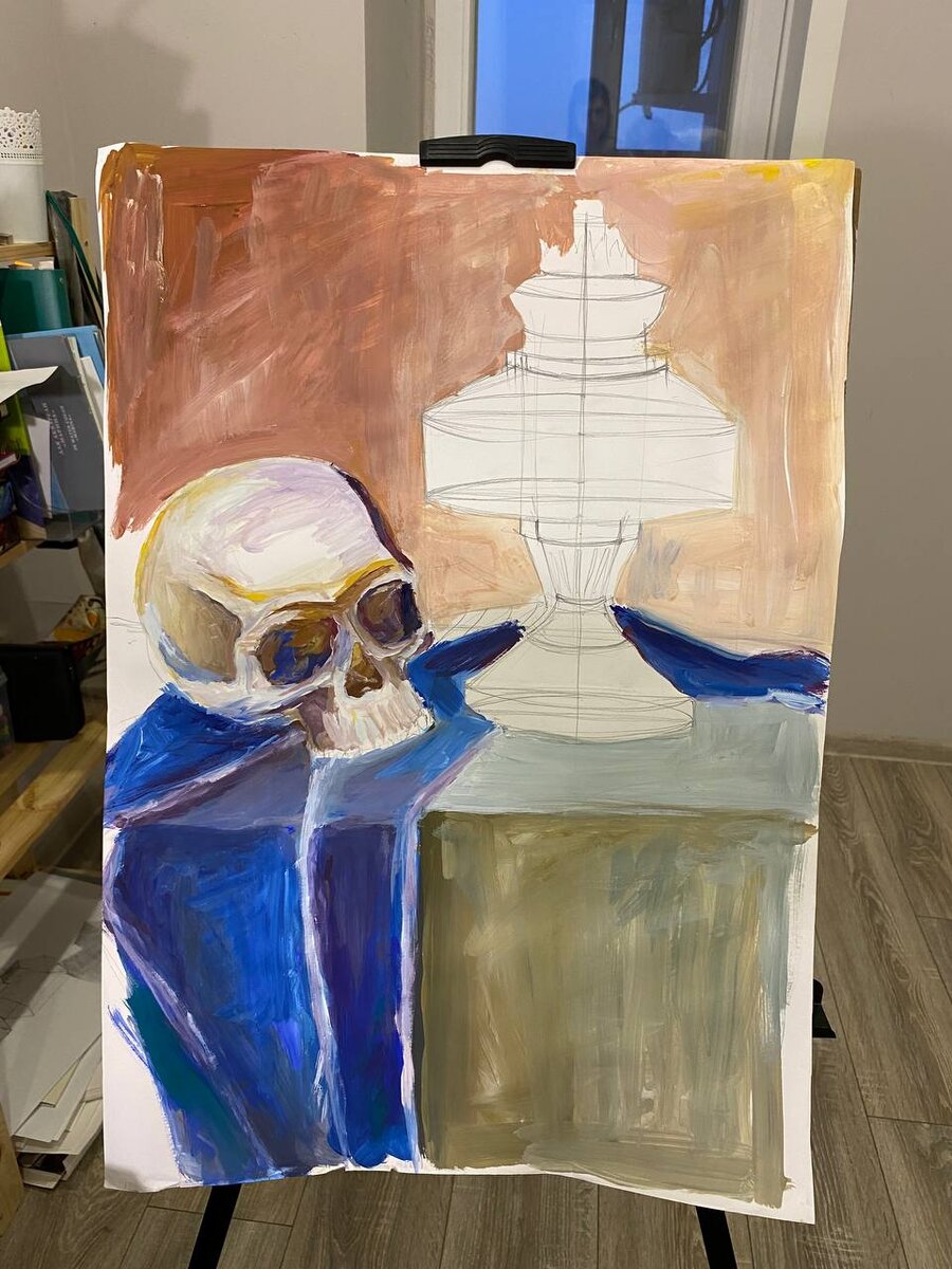 Рисую гуашью на новом мольберте.