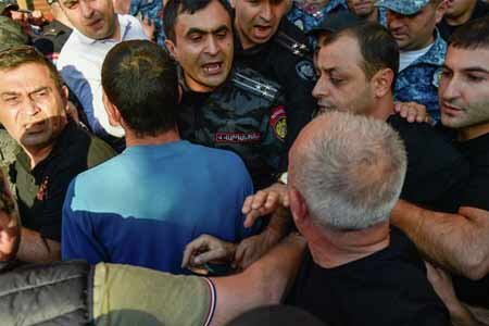 АрмИнфо.В ходе потасовки перед зданием представительства Арцаха в Армении пострадал руководитель аппарата президента НКР Карен Шахраманян. Собравшиеся перед зданием карабахцы, выражавшие возмущение прекращением финансирование с 1 октября работников государственных структур Арцаха, вступили в перебранку с представителями аппарата президента НКР, которая переросла в драку. В конфликт попытался вмешаться Карен Шахраманян, но получил удары кулаками. Лишь после вмешательства правоохранительных органов ситуацию удалось взять под контроль. По имеющейся информации, глава аппарата президента НКР был приглашен в полицию РА, где ему было предложено представить сообщение о применении против него насилия. Отметим, что сегодня группа арцахцев провела акцию протеста перед представительством Арцаха в Ереване с требованием провести встречу с президентом НКР Самвелом Шахраманяном. Граждане выражали недовольство последним решением президента НКР, которым были уволены все сотрудники госорганов. Во вре