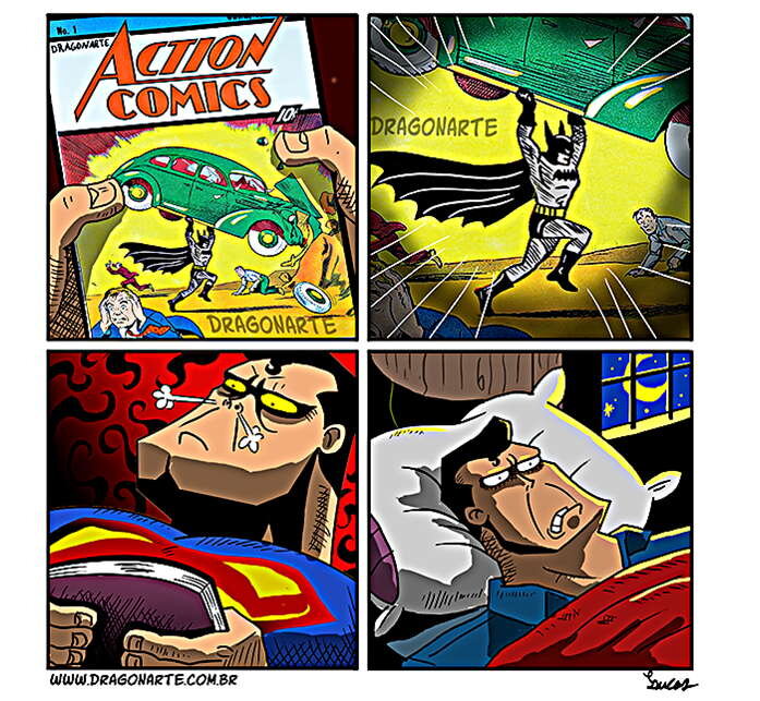 Кошмары непробиваемого человека из стали все как один связаны с лучшим другом, Рыцарем ночи. Всё потому, что они регулярно общаются, спасают бок о бок мир. А ещё Бэтмен тот ещё шутник... Суть их примерно одинаковая. Супермен пытается уснуть после тяжёлого дня подвигов по спасению мира. Но сны ему снятся странные и страшные. (Для нас прикольные и неожиданные). Бразильский художник Lucas Nascimento вдохновляется любимыми персонажами из комиксов и создаёт весёлые мини-зарисовки под ником Dragonarte. Мини-зарисовки Драгонарта про супергероев, понятны без слов читателям разных стран и всегда могут удивить. А ещё они наполнены спрятанными пасхалками. Так что не забудьте посмотреть на арты чуть внимательнее, чтобы найти скрытые детали или персонажей из других известных мс и комиксов. Готовы улыбнуться, читая юморные и комиксы о криптонианце и его ночных кошмарах? Тогда начнём! Комиксы перед сном Вот и ещё одна возможная причина, почему Бэтмен проберётся во сны Супермена. Надо было Кларку мень