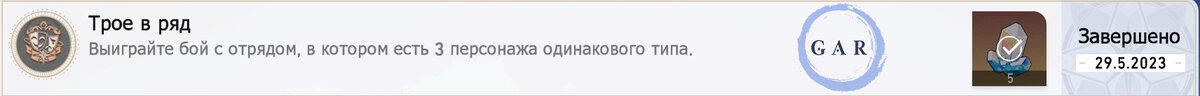 🔘Условия выполнения: Выиграйте бой с отрядом, в котором есть 3 персонажа одинакового типа.