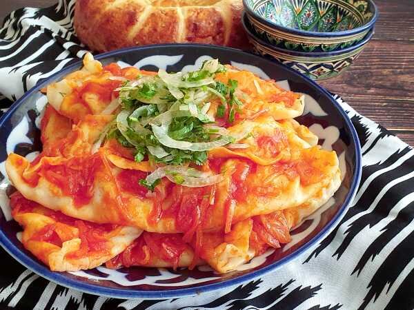 Расскажу!На самом деле всё не так сложно,но очень вкусно. Ингредиенты: – Для теста: – 500 г муки – 2 яйца – 1 стакан теплой воды – щепотка соли – Для начинки: – 700 г мясного фарша (говядина или баранина) – 3 луковицы – 4 зубчика чеснока – соль, перец, специи по вкусу – растительное масло для жарки – сливочное масло для смазывания Приготовление: Приятного аппетита!