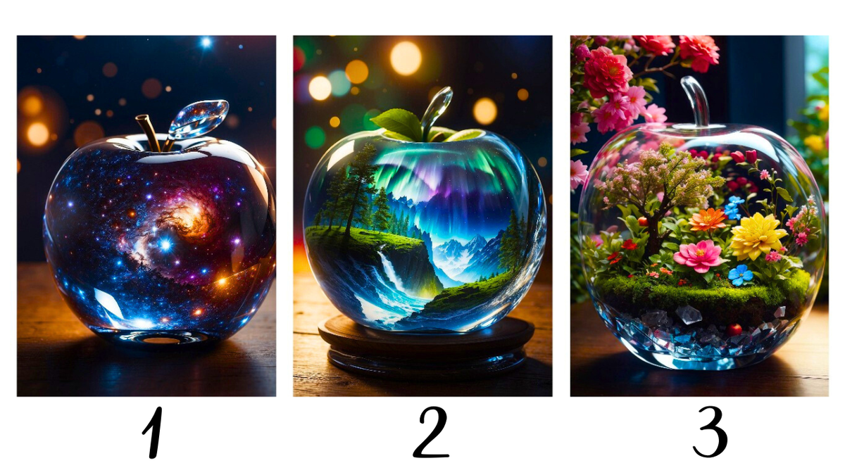 Прекрасные хрустальные яблоки способны служить зеркалом для нашего внутреннего мира. Через свои блики и отражения они раскрывают перед нами тайны будущего и предлагают глубокий инсайт в возможности, что ждут за горизонтом. Загляните в это зеркало интуиции и откройте для себя ценные предсказания ближайшего будущего. Посмотрите на картинку, какое яблоко притягивает ваш взгляд? Если вам привлекло первое яблоко, ближайшее будущее вероятно принесет вам новые возможности для самореализации. Ваше усердие и энтузиазм заставят вас буквально сиять, атмосфера преуспевания окружит вас. Не бойтесь принять вызовы, они укрепят вашу уверенность в себе и помогут открыть новые горизонты. 2. Второе хрустальное яблоко Если ваш выбор пал на второе яблоко, в вашей жизни возможно произойдут важные изменения. Возможно, вам придется подойти какому-то аспекту вашей жизни под другим углом или попытаться что-то изменить. Несмотря на возможные преграды, наберитесь мужества и смелости для преодоления. Этот пери