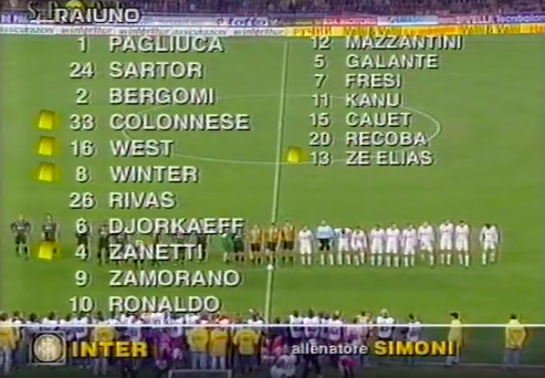 31 марта 1998-го, задымленный «Сан-Сиро», «Интер» принимает «Спартак». Я у экрана с тетрадкой в клетку – готов записывать стартовые составы под диктовку комментатора. В то время эта тетрадка – мой футбольный менеджер, там я разыгрываю топ-чемпионаты по круговой системе с помощью игрового кубика, определяю лучших бомбардиров, вратарей и даже провожу трансферы. Но база игроков отчаянно мала, футбольная трансляция – возможность ее пополнить сразу на 18 имен, «Спартак» мне известен, поэтому записываю только «Интер». На экране мелькают стартовые составы, а параллельно их зачитывают Владимир Перетурин и Виктор Гусев. Я слегка теряюсь: что быстрее, писать под диктовку или переписывать непонятную латиницу с экрана? Сомневаюсь слишком долго, титры исчезают, а Перетурин уже переходит к именам главных тренеров. Полный провал… В моих неразборчивых записях только: 1. Паль..ка, 24 Сарт… 16. Вэст.. 6. Джорк… 9. Иван Саморано. «Зубастик, Феномен, Роналдо», – комментатор делает акцент на главном футбол