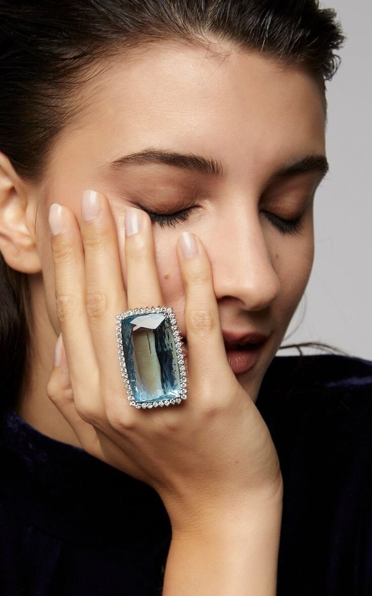 Приветствую Вас, стильные леди! Акцентные коктейльные кольца с красочными и однотонными камнями настоящий хит и любовь у модниц во всем мире. *Коктейльное кольцо — яркое и массивное (акцентное) украшение, которое носят на пальце руки, в которой предполагается держать бокал с напитком. Ранее использовалось на выход (вечеринки, праздники, увеселительные мероприятия, и пр.) Эти кольца переживали настоящий подъем и популярность в разные годы! Рождение этих колец, символизм в виде свободы, бунтарства и женской независимости произошло в «ревущих» 20-х, потом они вернулись в 50-х, поскольку в моду вошли коктейльные вечеринки, походы в оперу, театр, рестораны и ещё один яркий виток у этих украшений был в 80-е – эпоху хиппи. В настоящее время мы перенасытились минимализмом и всем, что с ним связано, ковидные заточение тоже сказалось на моде, ее потребностях и трендах! Женщине хочется праздника каждый день, просто так без повода, а эти кольца излучают позитив, искрящиеся настроение, блеск и крас
