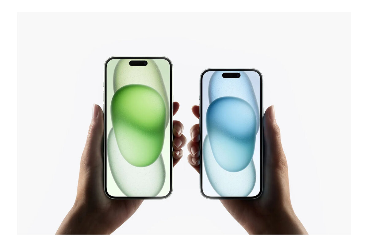 Apple ощутимо переработала базовую модель: она похожа на две предыдущие, но отличается в важных деталях. Главное нововведение — полностью матовый корпус с немного скругленными гранями и «динамический остров» в верхней части экрана вместо «челки». Еще изменили разъем для зарядки, поставили новую камеру, повысили яркость дисплея. Все это важные дополнения, польза от которых заметна. По всем параметрам это лучший базовый Айфон в истории. Модели 2021 и 2022 годов я советовал осторожно и с оговорками, но здесь рекомендация могла бы быть однозначной. Если бы не одно «но»: после скачка курса цены установились слишком уж кусачие. Для обзора я купил базовый iPhone 15 в желтом цвете. Но большинство выводов и особенностей в равной степени применимы к iPhone 15 Plus — у него побольше экран и батарея, но все остальное такое же. Сравнение размеров iPhone 15 Plus и 15 Где купить и по какой цене По всему миру продажи начались 22 сентября. В России Apple больше официально не представлена, поэтому п