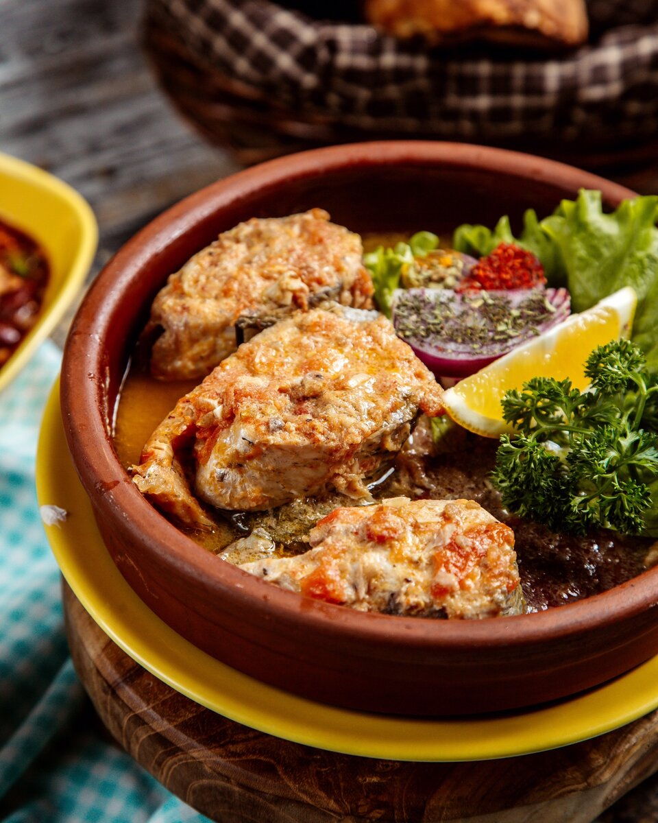 Ингредиенты: - 1 рыба (лосось, треска, судак и т.д.) - 1 лимон - Соль и перец по вкусу - Свежие зелень и лук для украшения -Розмарин Инструкция: 1. Подготовьте рыбу, почистить, промыв его под холодной водой и обсушивая бумажными полотенцами. Порезать на кусочки или оставить целой. 2. Приправьте солью, перцем и розмарином, полейте небольшим количеством оливкового масла. 3. Разогрейте духовку до 180°C. 4. Нарежьте лимон тонкими кольцами. 5. Положите рыбу на противень, выложите на неё лимонные кольца. 6. Запекайте рыбу в духовке около 20 минут, до полного приготовления. Убедитесь, что рыба стала нежной и легко отделяется вилкой. 7. Пока рыба запекается, нарежьте свежую зелень и лук для украшения. 8. Когда рыба готова, выньте ее из духовки и дайте немного остыть. 9. Выложите рыбу на тарелку и украсьте свежей зеленью и луком. 10. Подавайте сразу же и наслаждайтесь вкусным и полезным блюдом! Приятного аппетита!