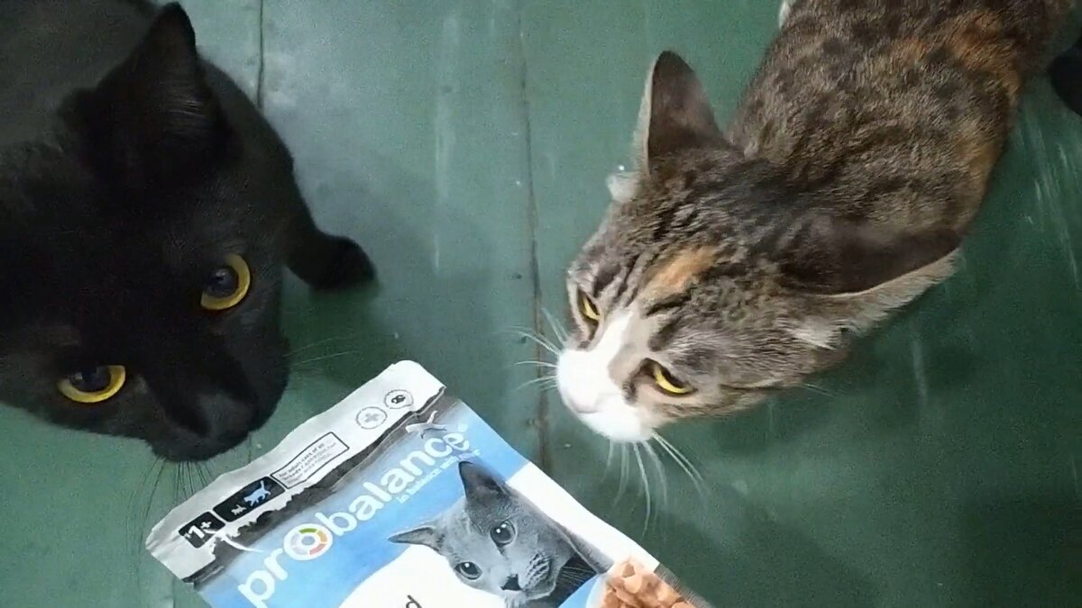 Наши коты Белка и Тигра ещё с раннего утра были накормлены, но при виде сосисок потеряли волю и требовали добавки. И если Груня свои сосиски смела шустро, то Беляшик оказался очень загадочным парнем и только внук смог понять чего же хочет кот.