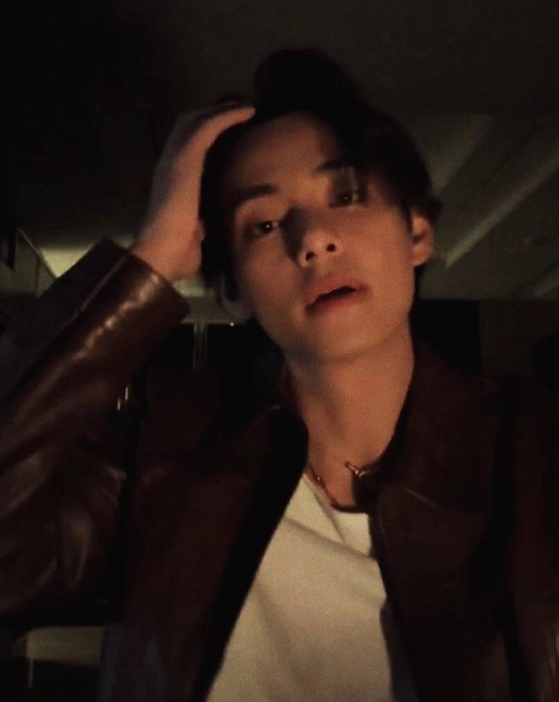 Сначала он появился в кухне, которую мы уже видели, вопрос в том, что он сидел там в темноте и куртке, но, как вы понимаете, конкретно в случае Тэхёна это не такой уж и вопрос - захотелось. Был он краток и кокетлив, сначала быстро отчитался по эфиру прошлого дня, когда ушёл внезапно и не попрощавшись. Сказал, что был пьян, так что быстро уснул.