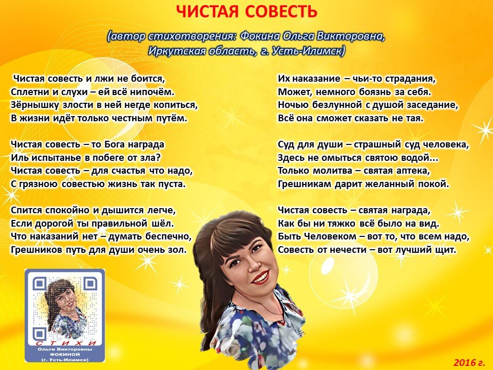 Чистая совесть (стихи Ольги Фокиной, Усть-Илимск)