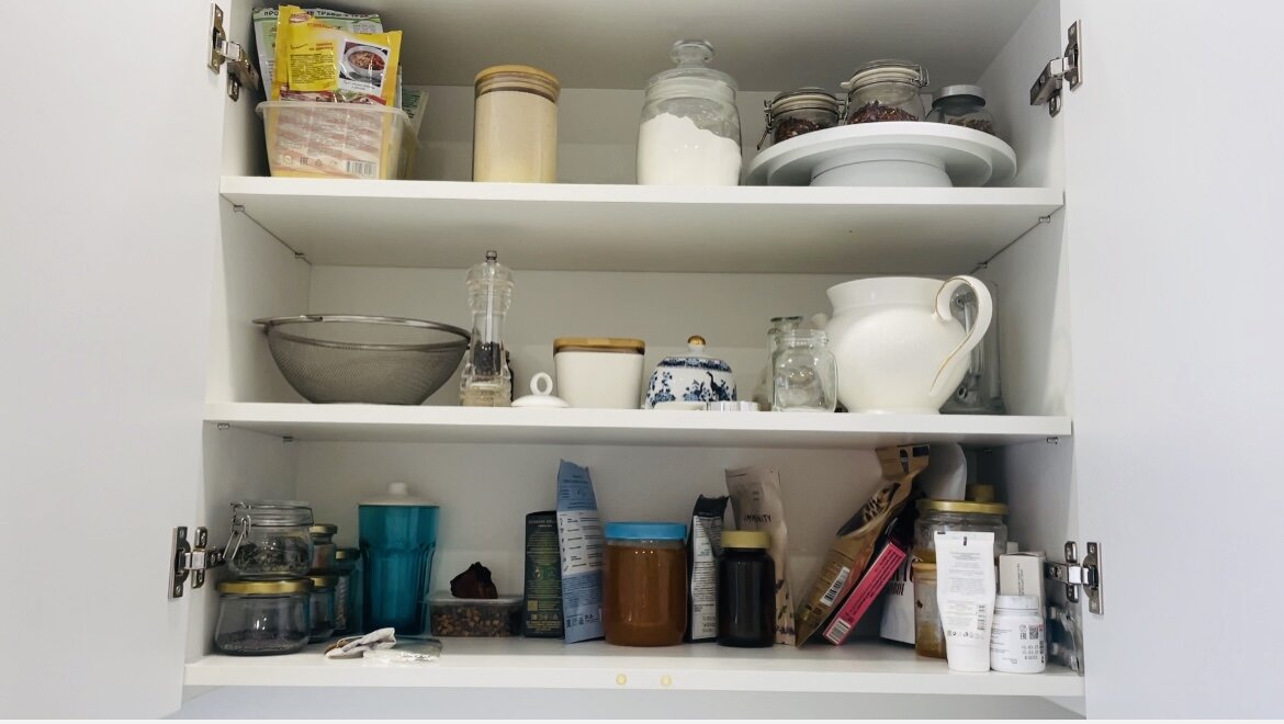 Продолжаем марафон уборки, сегодня захотелось устранить беспорядок в шкафчике, где хранятся специи, чай-какао, для выпечки. И хочу немного переорганизовать Хранение. Вот как выглядело ДО Уборки: В итоге на самой верхней полке оставило то, что нужно для выпечки: дрожжи, сухое молоко, закваска, крахмал кукурузный, сахарная пудра: На второй полке все специи. Специально не стала задвигать их поглубже, во-первых, думаю так будет легче использовать их и не забывать, а во-вторых, не будет соблазна положить что-то на полку, таким образом и беспорядок не будет образовываться от случайно оставленных предметов на этой полке. И третья полка чайная: там хранится чай, какао, также витамины, мёд, крем для рук, перекись и от аллергии лекарство. Чай хочу в ближайшее время сократить количество путём частого заваривания, не люблю, когда много всего: В итоге организация хранения в шкафчике меня полностью устраивает: Особенно мне нравится Хранение в стекле, часто оставляю симпатичные небольшие банки и пото