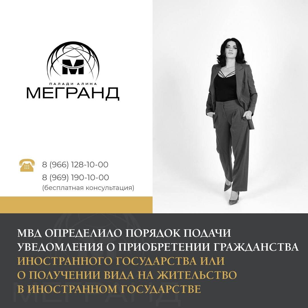 иностранного государства или о получении вида на жительство в иностранном государстве. Соответствующий ведомственный приказ опубликован на официальном портале. Форма же этого уведомления будет установлена положением по вопросам гражданства — тем самым указом президента, без которого не работает закон о гражданстве. Нас можно найти по адресу: РФ, Московская область, г. Одинцово, ул. Маршала Неделина, дом 9, офис 1 📱 +7 929 931-37-57 +7 (965) 335-10-00— офис +7 (968) 415-10-00 — Алина РФ, Московская область, г. Одинцово, ул. Верхне- Пролетарская, дом 7, офис 1 📱 8 495 295-10-00 — офис +7 (926) 002-91-35 — офис +7 (968) 803-10-00 — Ирина РФ, г. Москва, ул. Рождественка, дом 5/7 стр. 1, каб. 20 (метро Кузнецкий мост) 📱 +7 (966) 128-10-00 — офис +7 (968) 799-10-00 — Кристина +7 (968) 415-10-00 — Алина РФ, Московская область, Одинцовский район, р.п. Новоивановское, ул. Калинина, дом 8, офис 1 📱 +7 (969) 190-10-00