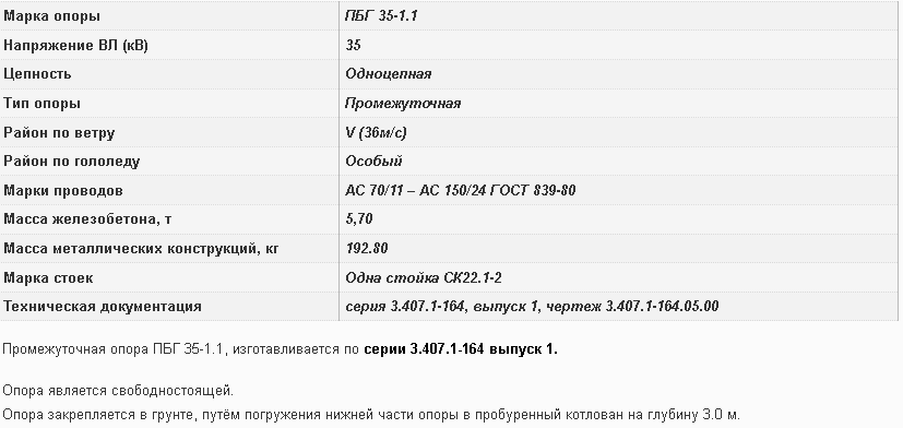 Промежуточная опора ПБГ 35–1.1, серия 3.407.1–164 выпуск 1