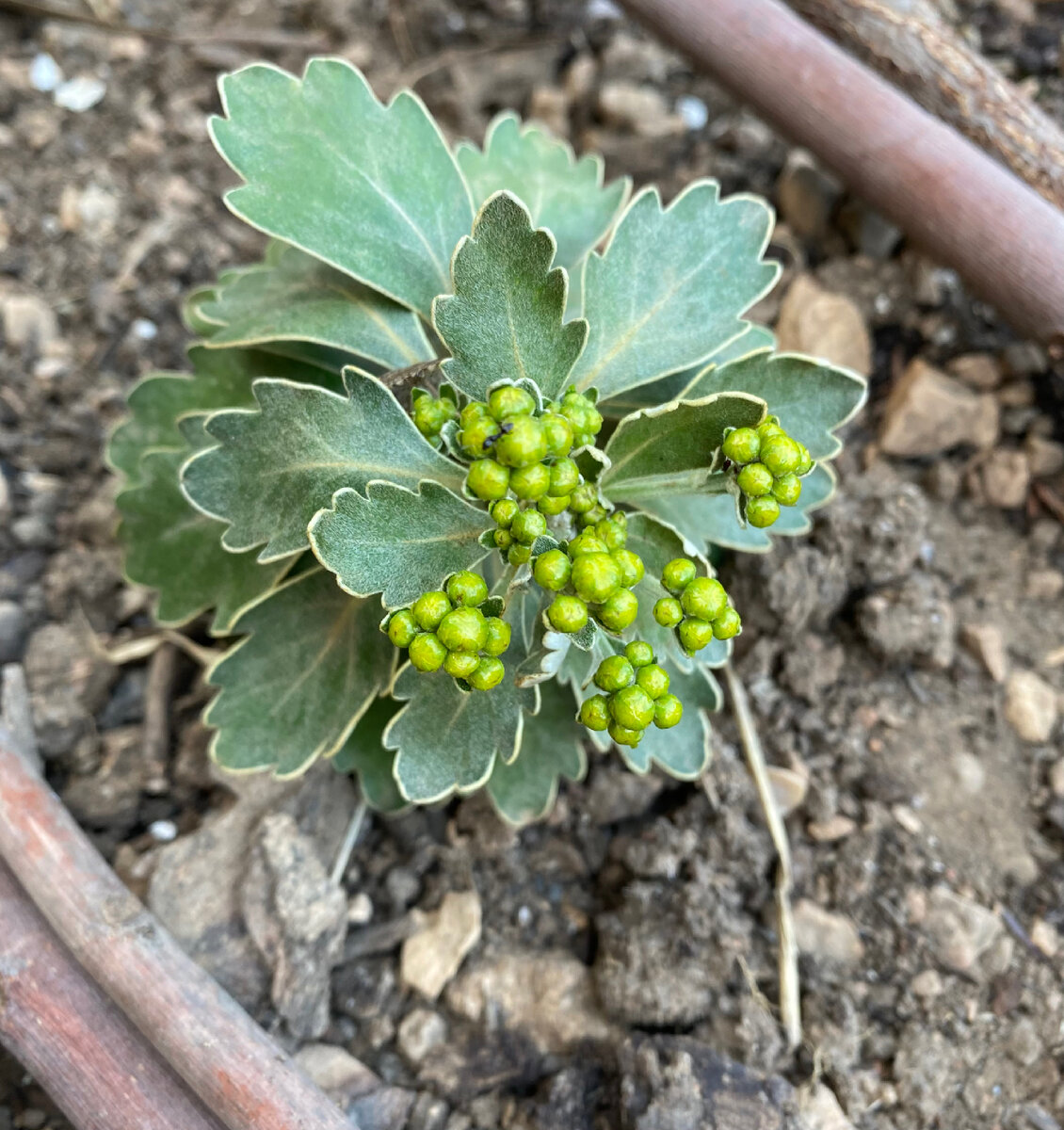 Листья аянии плотные, резные, имеют серебристый оттенок и светлую кайму по краю листа. Даже без цветения аяния всегда привлекает внимание. Цветение позднее, как у хризантем, продолжается до первых заморозков.