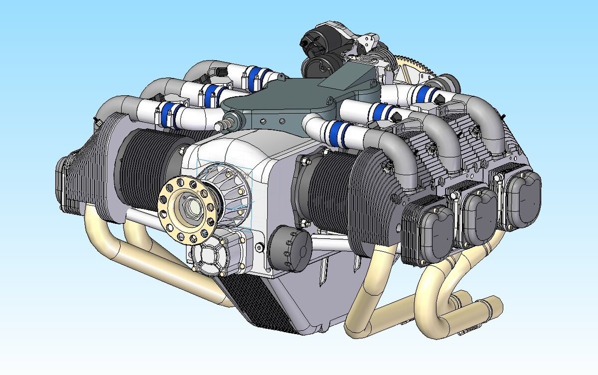 Для реинжиниринга был выбран авиационный поршневой оппозитный шестицилиндровый двигатель со следующими характеристиками: