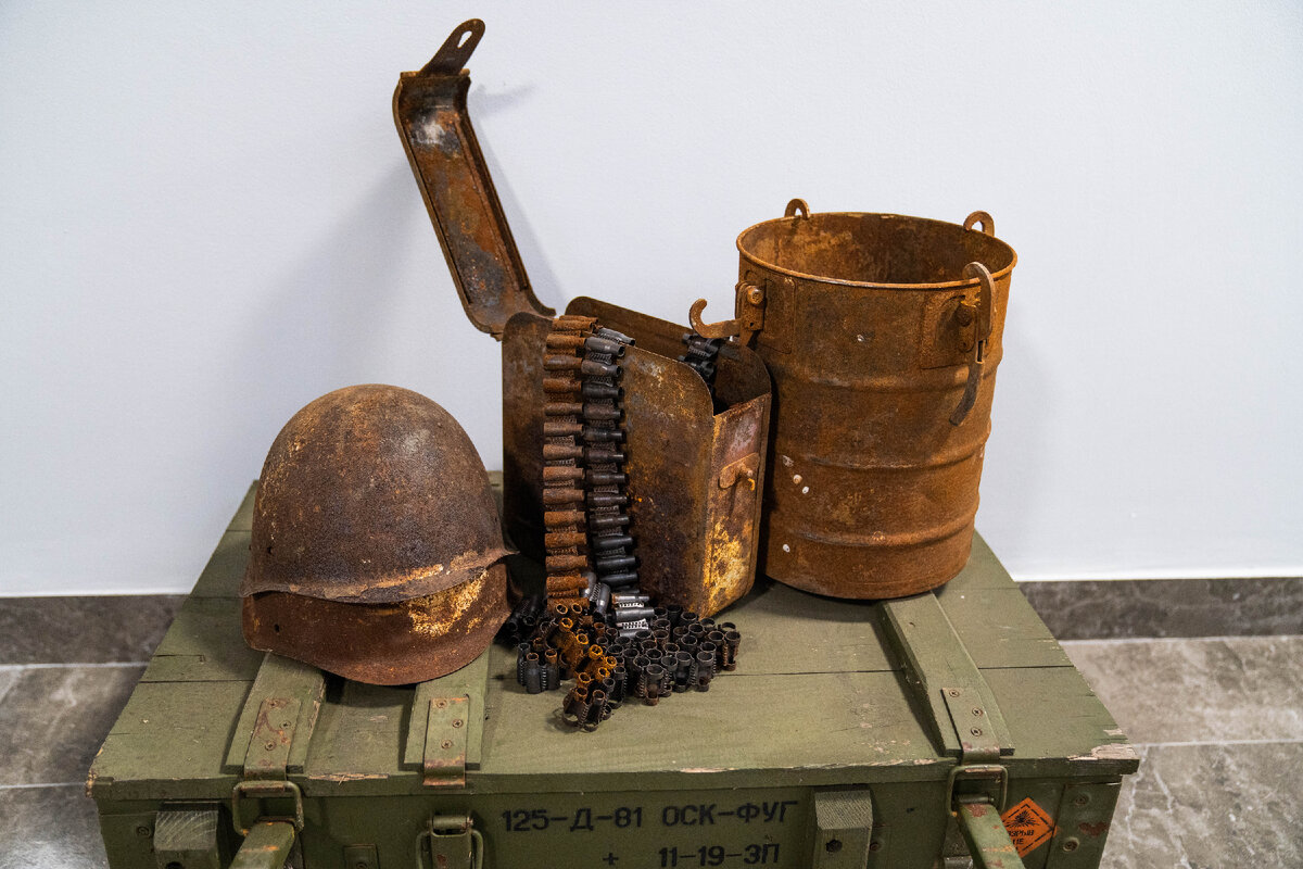 Фонды музея-заповедника пополняются военными экспонатами, привезенными из зоны боевых действий на территории Украины. Среди них – фрагмент гусеницы от самоходной артиллерийской установки 2С1 «Гвоздика», пенал для пулемётной ленты, артиллерийская буссоль на треноге и многое другое. Вооружённые Силы Российской Федерации уверенно продолжают выполнять цели и задачи специальной военной операции.