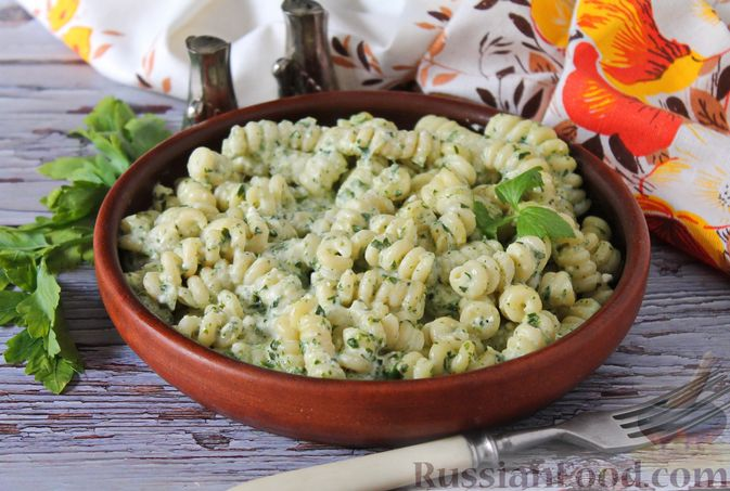Продукты (на 4 порции) Даже обычные макароны могут удивить, если добавить немного фантазии. Приготовим к макаронам соусом из шпината со сливками, сметаной, твёрдым сыром и творогом. Макароны с таким интересным соусом получаются сочными и нежными, с выраженным сливочным вкусом, к тому же яркими благодаря шпинату. Подготовьте все необходимые ингредиенты. В кастрюлю налейте 1,5 литра воды, доведите до кипения, посолите (щепотка). Всыпьте макароны, перемешайте. Варите на среднем огне в течение 8-12 минут (или согласно времени, указанному на упаковке). Откиньте готовые макароны на дуршлаг, дайте воде полностью стечь. Пока варятся макароны, шпинат переберите и промойте, отрежьте стебли. Листья шпината обдайте кипятком, стряхните воду и отправьте шпинат в чашу блендера с насадкой "нож", измельчите. Добавьте к шпинату сметану и ещё раз пробейте до однородности. В сковороду влейте сливки, добавьте сливочное масло и разогрейте на среднем огне. Добавьте в сливки шпинатную массу, перемешайте. Чес