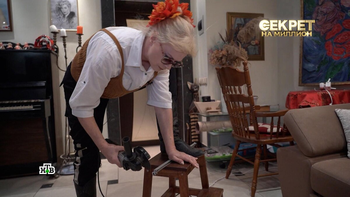 [ Смотреть видео на сайте НТВ ] У экс-солистки известной в СССР группы «Мираж» Светланы Разиной необычное хобби. Певица занимается столярным делом, в частности, изготовлением мебели. У Светланы Разиной растут руки из правильного места, певица «приложилась» почти ко всей мебели, которая есть в доме. Сама сделала кровать и шкаф под старину. На раритетную мебель Разина не тратится, а принимает в дар от друзей. Светлана Разина, экс-солистка «Миража»: «Например, этот комод был в печальном состоянии, столешница была вся покоцанная, мне пришлось ее всю зашкурить, заново сделать покрытие». В спальне у Разиной — задекорированный под шкаф санузел. А еще Светлана шьет сама: и в мир, и в пир выходит в эксклюзивных нарядах собственного производства. Борис Карпов, муж и директор Светланы Разиной: «Через какое-то время после знакомства понял, что цветы ей дарят на концертах. Очень много. А вот когда шуруповёрт — это счастье прям неимоверное». Лера Кудрявцева: «Растопили сердце шуруповёртом?» Борис Ка