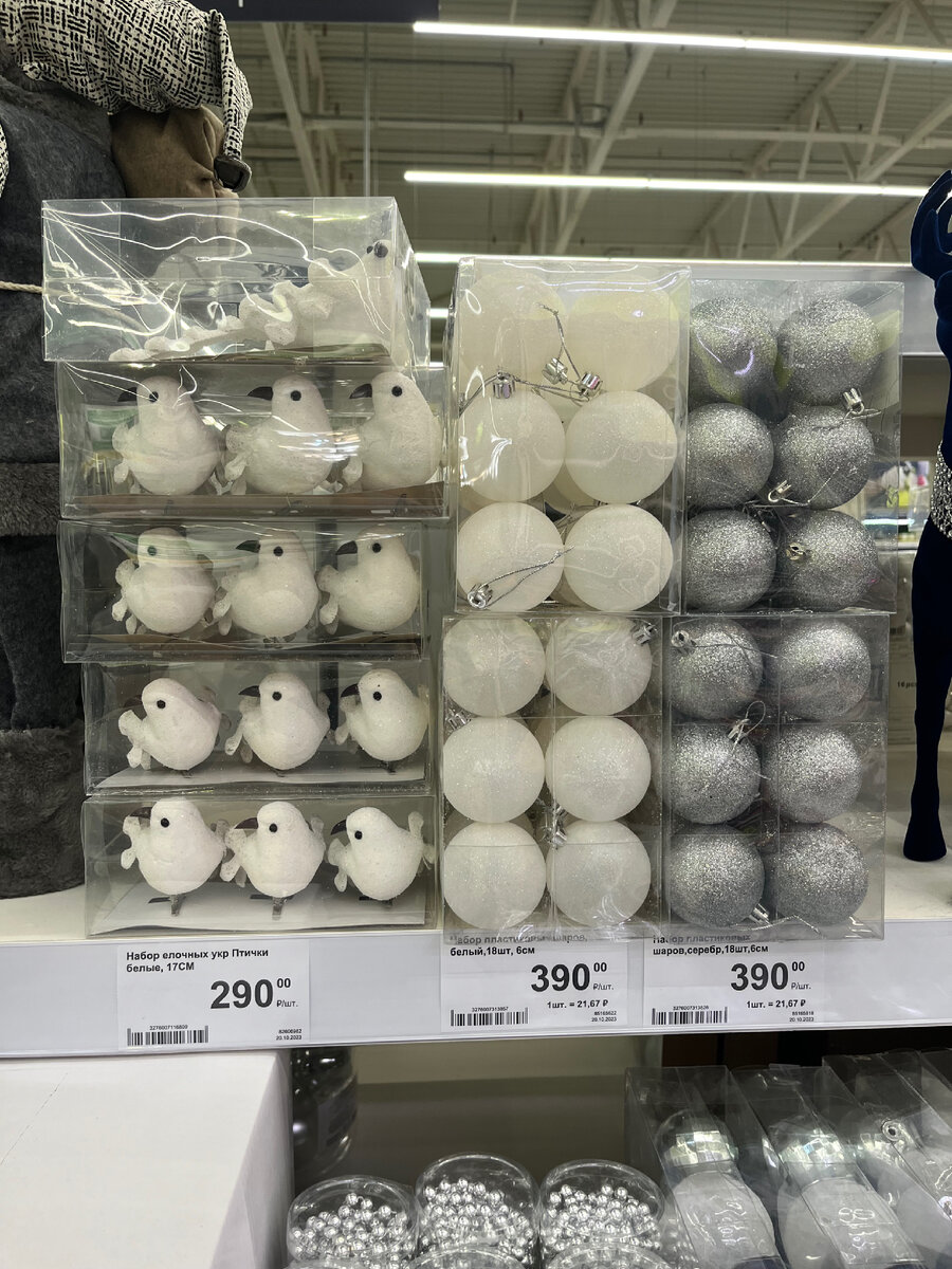 Новогодняя тема набирает популярность. Магазины, как будто на перегонки стараются успеть обогнать друг друга и забить магазинные полки новогодним товаром, чуть ли не с начала октября. Мне кажется к концу декабря уже будет тошнить от этих игрушек, и так такой уже переизбыток. Особенно когда в Краснодаре +25, какой Новый год может быть😁 Приветствую всех читателей на моем канале 👋 А с другой стороны, лучше наверное купить все заранее и не бежать под конец года, толкаться и драться в очередях, ну а что, бывает и такое 😅 И так смотрим что же Леруа приготовил из новогоднего в этом году? Как всегда беру вас с собой 😄 Эта статья носит исключительно развлекательно информационный характер и это никакая не реклама, никого не призываю к покупке какого-либо товара. Новогодние игрушки. Пластмассовые, стеклянные, в наборе, и по отдельности. Цены разные есть шарик и за 15 рублей, есть и за 150🤷♀️ Все расставлено по определенной цветовой гамме. Удобно подобрать шарики между собо