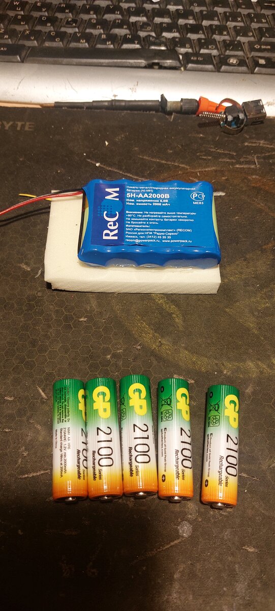 Восстановление (создание) акб на HiMh аккумуляторах. Пришел как то в негодность вот такой аккумулятор от измерителя сопротивления изоляции.Мегаомметра Е6-31 (Так же подходит для Е6-31/1 и измерители ИС-20, ИС-20/1) Глядя на стоимость нового, а так же вскрыв оригинальный и оценив качество.Я принял решение собрать собственноручно АКБ из ячеек GP2100.По скольку они на мой взгляд будут качественей чем то что было установленно производителем. Как видим установлены 5 ячеек по 1.2 вольта, так же присутствует датчик температуры 100Ком и соединяет это все 4пин разъём типа 5557. И так приступим. Нам понадобится 5 ячеек в моём случае Gp2100mAh 1 разъём 5557 4pin 4 терминала для разъёма Датчик температурный 100Ком Проводки 4шт (длинна видна на фото) Термоусадочная пленка Начинаем сборку Что мы видим.Банки склеены между собой секундным клеем и усилены термосоплями. Провод минуса пропущен змейкой по всему акб (разобрал много таких и встречается как змейка так и прямая подпайка) Мы же будем дел