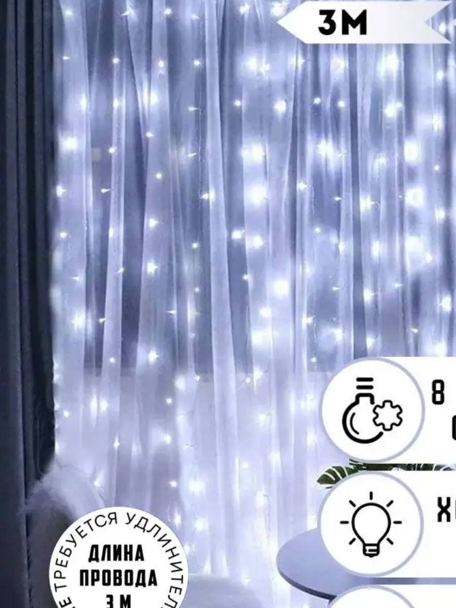 У многих гирлянд есть различные цвета в ассортименте, ссылка будет на один из видов. Также в одной карточке товара возможно наличие разных видов гирлянд - каждую вставлять в статью не будем, переходя по ссылкам уже выбирайте вам понравившуюся. Плюс еще немного дополнений к гирляндам мы тоже включили в эту статью 1) HapMe home Гирлянда штора занавес 3х2 на окно, рейтинг 4,8. 359 ₽ 2) BOXA shop Гирлянда звезды на окно 3м, рейтинг 4,8. 469 ₽ 3) Гирлянда Новогодняя Роса Гирлянда роса 10 метров теплый белый, рейтинг 4,7. 237 ₽ 4) Coosh Led OK Гирлянда штора 3х2 синяя на окно, рейтинг 4,8. 297 ₽ 5) BestGarlands Гирлянда роса уличная 100 метров, рейтинг 4,9. 2 159 ₽ 6) Happy new 2024 Крючки для гирлянд самоклеящиеся прозрачные, держатели 72шт (не гирлянда, но может пригодится), рейтинг 4,5. 192 ₽ 7) OLAKEN Гирлянда уличная бахрома на дом 25 м садовая светодиодная, рейтинг 4,8. 1 315 ₽ 8) гирлянда новогодняя LN Гирлянда новогодние шары украшение и декор, рейтинг 4,6. 681 ₽ 9) CrazySanta Гирлян
