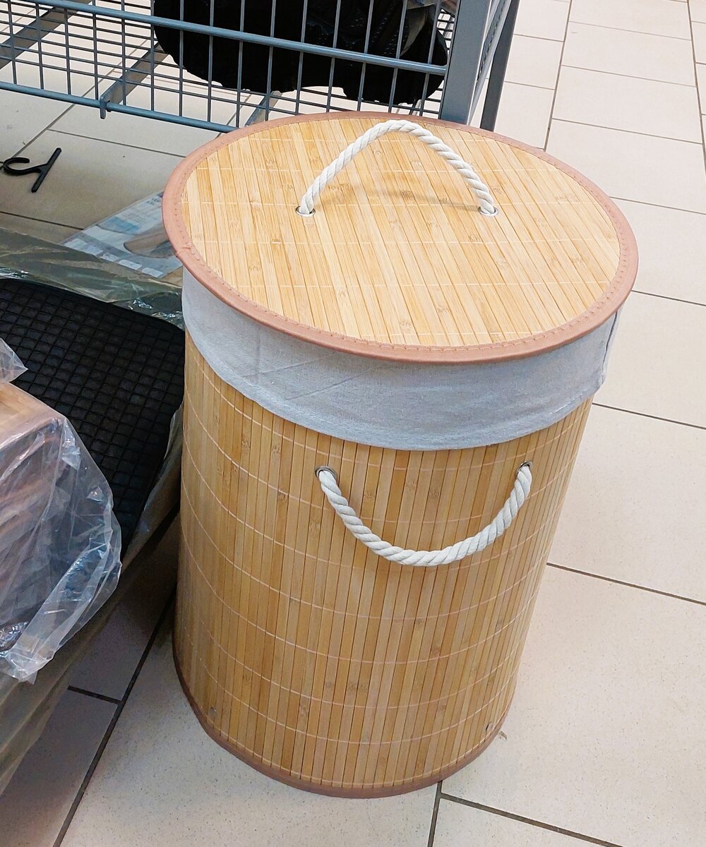 И как раз с них и начну. Только захожу в Чижик, осматриваюсь, и сразу взгляд зацепил новую корзину для белья. Выглядит она очень стильно и мне понравилась. Похоже, что этот шпон из бамбука. У нас такие сервировочные салфетки дома, покупала в Икее. Весьма удобные и приятные на столе. Корзина мне их и напомнила.