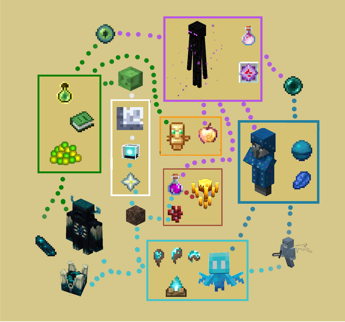 Нашел интересную теорию, которая описывает, какой смысл вложен в некоторые цвета, часто встречающиеся в Майнкрафте. По какой-то причине обошли вниманием красный цвет, но я добавлю его расшифровку уже от себя. Итак, что же стоит за цветом в этой игре? Зеленый — знание. Сферы опыта, книга знаний, книга рецептов — все это окрашено в зеленый. Также этот цвет представляет настоящее в контексте времени и олицетворяет Верхний мир. Трава, некоторые уникальные мобы (криперы, слизь) — все это можно встретить только в настоящем, то есть в Верхнем мире. Голубой — душа. Песок душ и огонь душ окрашены в голубой. Алмазы тоже имеют голубоватый оттенок, и можно сказать, что поиск алмазов — это в каком-то смысле душа Minecraft. Тихони, кстати, тоже голубые, что говорит о чистоте их души. Они считаются полной противоположностью досаждателей, чья чистота поблекла, что сделало их серыми. Синий — магия. Зачарованные объекты становятся синеватыми, поскольку при их крафте используется ляпис. Сердце моря также