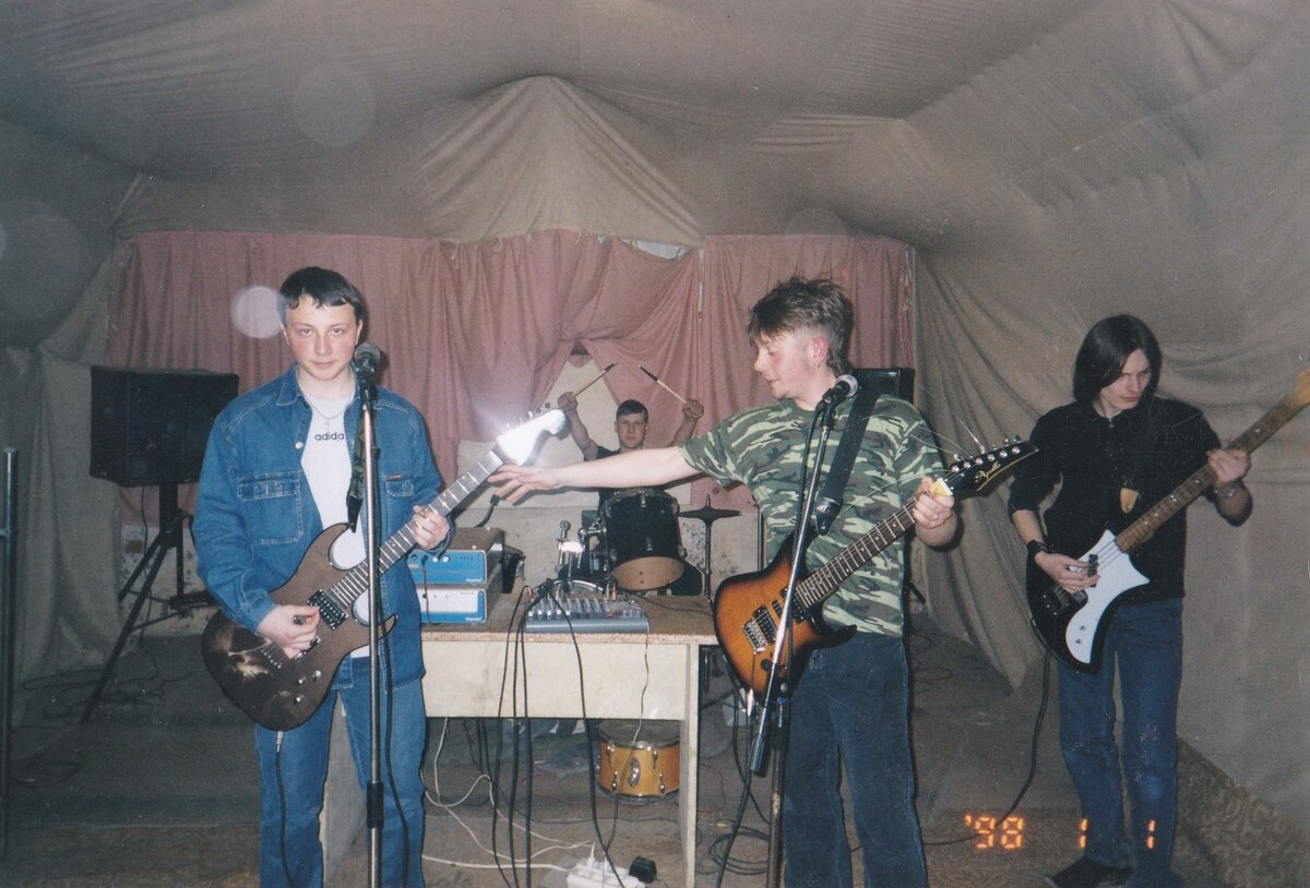 Первый состав, с которым мы выступили, образовался, примерно в декабре 2004 года. Тогда мы начали репетировать на репбазе, в подвале первой музыкальной школы города Рязани. На базе назначили мы репетицию в составе: Коля Сливко, Бачок, "один парень" на барабанах. Не буду ничего скрывать. Стоим, пьем самогон в перерыве во дворике музыкалки. Подходит к нам барабанщик группы "Эпицентр" - Славик Козлов, он был знакомый "одного парня", и говорит: - Пацаны, нальете? - Конечно, о чем разговор! Познакомились со Славой, нам он очень понравился, наш пацан. Мы предложили ему поиграть у нас на бас-гитаре. Слава согласился. Наступила следующая репетиция. Ждем "одного парня", его нет. Говорим Славе, мол, сядь пока за барабаны, ты ж барабанщик. Слава сел и сходу играет очень круто, мы аж не ожидали, песни прямо сходу начинают получаться. Тут в конце репетиции звонит "один парень", но к сожалению, а может быть к счастью, мы ему объявили, что он алкоголик, прогулял репетицию, и вообще т