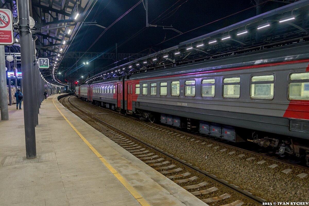 Этот обзор, наверное, требует нескольких предупреждений. Во-первых, уберите от экранов слабонервных «настоящих прафисианалов» от железнодорожной фотографии – их нежной психике будет нанесен непоправимый удар. Во-вторых, не стоит буквально понимать слово «ночной» - здесь это скорее обозначение темного времени суток. И третье: здесь не весь Белорусский вокзал, а только та его часть, где сейчас проходят два диаметра – первый и четвертый. Все почему? Потому что оказался я уже темным вечером в районе Белорусской, ехать с пересадками было лениво (хоть и несколько быстрее) и вот я решил сразу по прямой – по МЦД-4. Ну и заодно потренировался в вечерне-ночной съемке с неровным освещением. 1. Первый «выстрел» по традиции пристрелочный – для определения подходящих выдержки, диафрагмы и числа ISO. Ну вроде «попал». На самом деле, наверное давно уже Белорусский вокзал видел «монстров», до МЦД-4 их почти всех «изжили» и если и оставались, то в комплектации экспрессов, а вот таких как ЭД4М-0312 – так