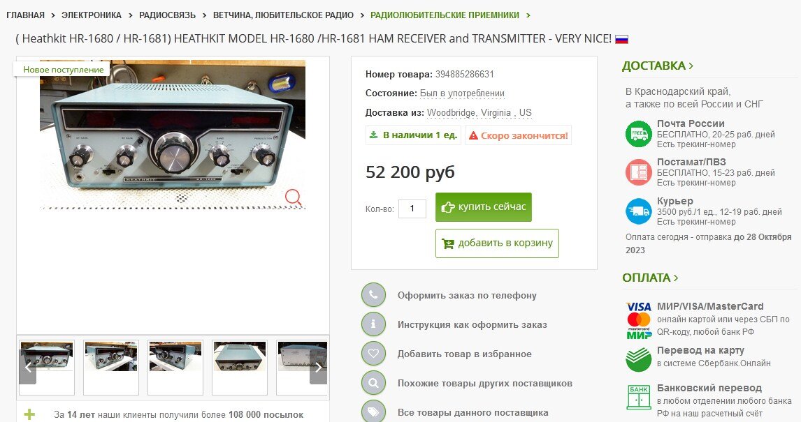Добрый день дорогие друзья Я периодически просматриваю предложения для радиолюбителей в различных интернет магазинах и аукционах, и вот мне попался выставленный на продажу радиоприемник на любительские диапазоны HR-1680. В первую очередь он меня заинтересовал тем, что собран из радиоконструктора известной фирмы Heath Company из США, выпускающей наборы для самостоятельной сборки радиоэлектронных устройств. Об одном из наборов этой компании, я уже рассказывал на страницах моего канала в публикации Зарубежный радиоконструктор (diy kit набор) начала 60-х годов 20 века STEREO AMPLIFIER (ламповый усилитель НЧ) AA-151. Я поначалу не хотел рассказывать моим читателям об этом радиоприемнике, по причине того что я описываю только те радиоконструкторы, которые могут повторить мои читатели, но в этом случае решил отступить от своего правила. Но давайте вернемся к теме нашего разговора, и посмотрим технические характеристики радиоприемника HR-1680. Вид на ли