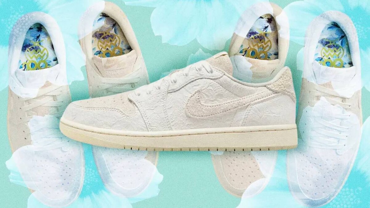 Chris Paul x Air Jordan 1 Low OG «Give Them Flowers» — утонченная интерпретация популярных кроссовок. Эта низкая модель, представленная в кремовой цветовой гамме с легким тиснением цветочного узора и полупрозрачной подошвой , заслуживает пристального внимания.