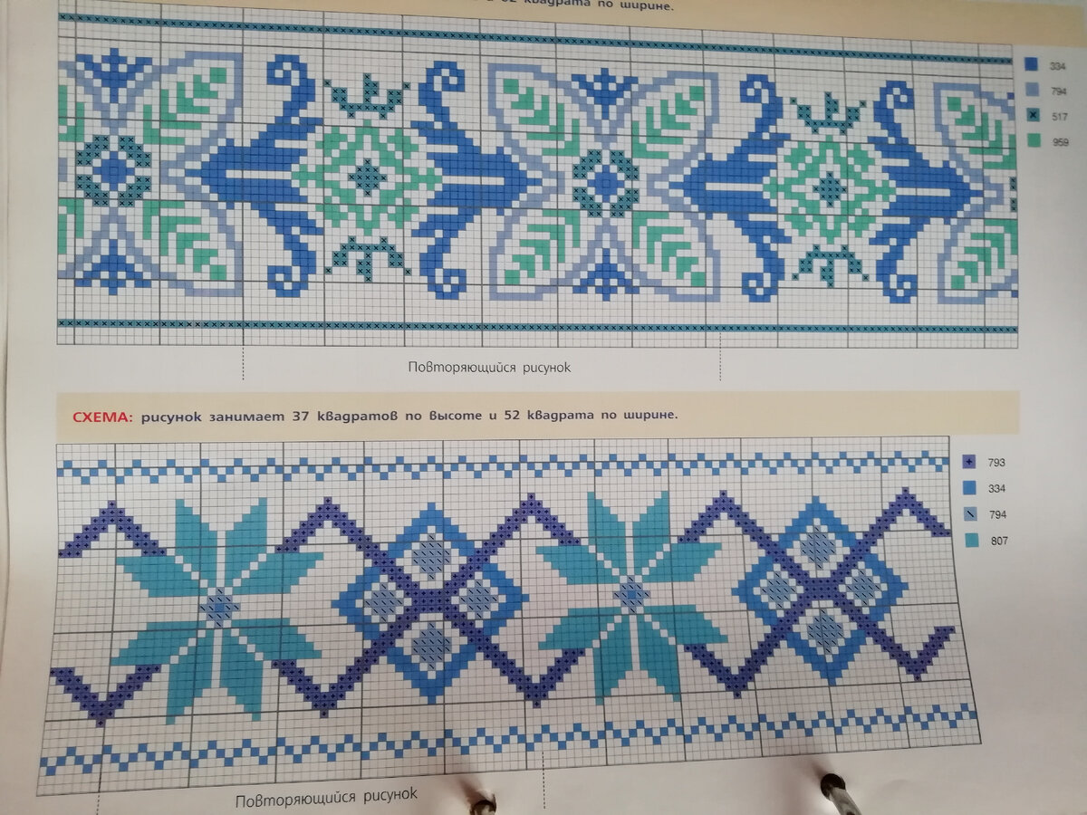 Листая старые журналы по вышивке искала что-нибудь такое, что можно было бы применить к вязанию. И, кажется, нашла. Это будет интересно для любителей вывязывания интарсией, а также для тех, кто любит вышивать по вязаному полотну Вполне можно применять и как кайму, например, для вязаного полотенца, и как орнаментный элемент для вязаного сарафана или платья. На кардигане или пальто такая вертикаль или горизонталь (если выполнить по низу) тоже будет очень выигрышно смотреться. Так что дерзайте, мои дорогие подписчики и просто посетители. А цвета... Так вы же можете подобрать любые, которые вам нравятся, чтобы они подходили под общую расцветку изделия. Вовсе не обязательно придерживаться цветовой палитры схемы. Очень нравятся мне лично листья представленные ниже: Была рада помочь вам с выбором орнамента. Если что-то из представленного выше вам понравилось, не забудьте поставить пальчик вверх. Этим значком вы придаёте мне уверенности в том, что мои статьи, посты и прочее действительно ва