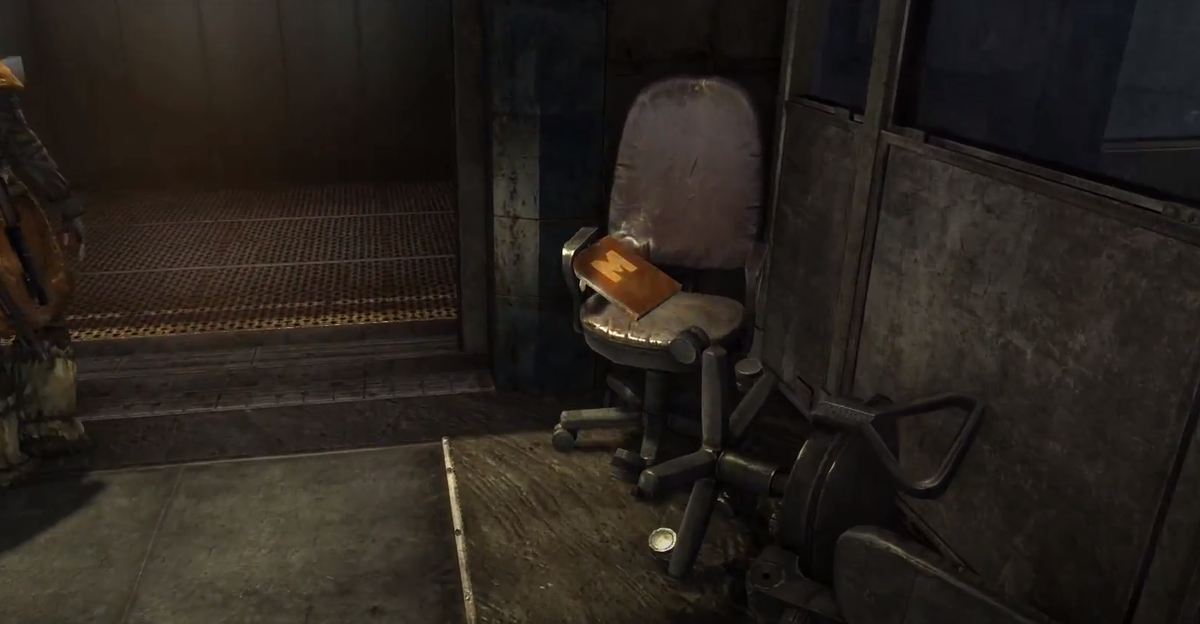 Как только вы поговорите с Мельником и выйдете из комнаты, перед лифтом на стуле будет лежать первая запись.