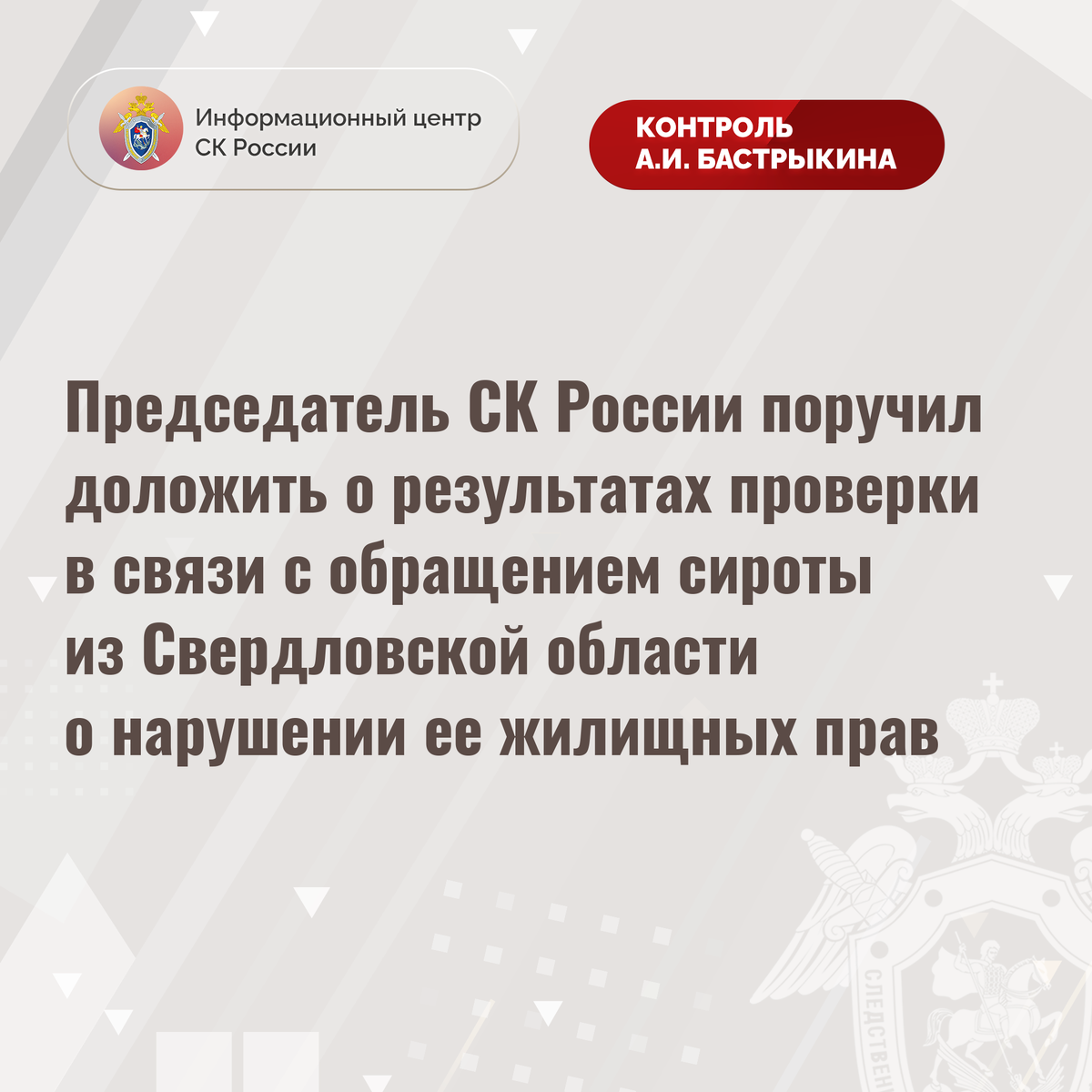 Председатель СК России поручил доложить о результатах проверки в связи с обращением сироты из Свердловской области