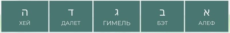Точнее буква. Иврит относится к группе семитских языков, а эти языки начинают изучать с алфавита, как говорят нам лингвистические источники. Что мы уже знаем и что нам пригодится сейчас: Наши первые цели: И в этой статье будут первые четыре буквы: Ниже будут приводится правила для начального уровня, чтение с огласовками: Алеф א Сама буква никак не читается, у нее нет звука. Для того, чтобы она обрела звук под ней ставится огласовка (о том, что это будет сказано ниже). Бэт/Вэт ב Если у буквы стоит в середине точка (эта точка называется "дагеш"), то она читается, как [б], если точки нет, то она читается, как [в]. Гимель ג Дает звук [г]. Далет ד Дает звук [д] hей ה Дает звук [х]. Это очень легкий звук, не такой четкий, как в русском языке. Произносится с придыханием, носителями может вообще не произносится. И так мы освоили первые пять букв, теперь, чтобы сложить из них первые слова и начать читать, нужно узнать об огласовках: Огласовки на иврите «нэкудот»(в дословном переводе — «точки