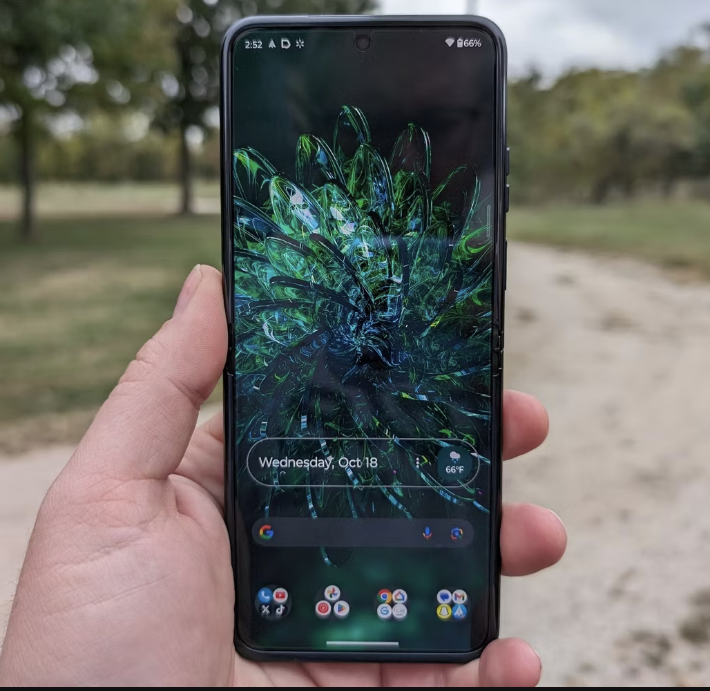 Глядя на внешний дисплей, эта 1,5-дюймовая AMOLED-панель далека от 3,6-дюймового варианта Razr +. Это один из самых больших компромиссов, на который Motorola пришлось пойти, чтобы сделать этот телефон более доступным, и меня это устраивает. Предпочитаю ли я дисплей большего размера на крышке? Конечно. Но до того, как Razr + появился на улицах этим летом, мы знали только дисплей меньшего размера на крышке. Несмотря на небольшие размеры, внешняя панель Razr по-прежнему яркая, с максимальной яркостью 1000 нит. Существует несколько программных опций для настройки экрана с помощью различных плиток, таких как погода, мультимедиа, таймер, календарь, циферблаты и многое другое. У экрана cover есть одно большое ограничение, но я расскажу об этом подробнее в этом обзоре.