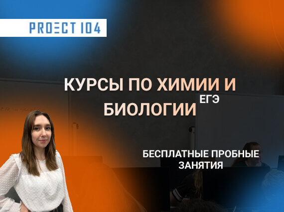 Мы приглашаем вас к нам в Proect104, в котором всегда царит дружеская и тёплая атмосфера с чаем и сушками, и в котором вам будет оказана вся необходимая поддержка и помощь. Поэтому, если вас заинтересовали курсы по химии и биологии, начните знакомство с нашим образовательным центром с бесплатных пробных занятий.