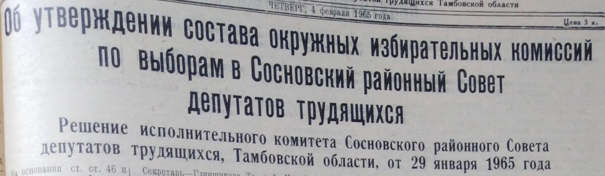 Состав избирательных комиссий Сосновского района в 1965 году. Часть 3. Кулеватово, Семикино, Красный Хутор, Перкино